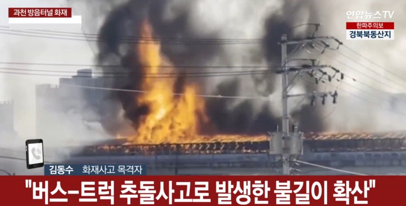 신고를 받고 출동한 소방당국은 지휘차 등 47대와 인력 120명을 동원해 화재를 진압 중이다. 불은 버스와 트럭 추돌 사고 이후 발생해 방음터널까지 번진 것으로 나타났다.