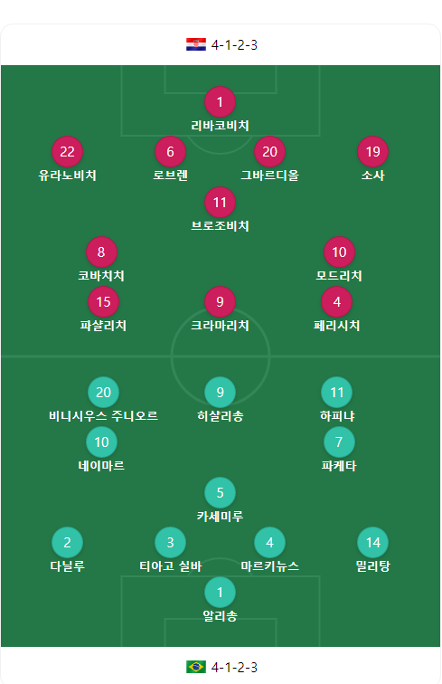 2022 FIFA 카타르 월드컵 8강 대진표 브라질 크로아티아 선수 네이마르 히샬리송 출전 12월10일