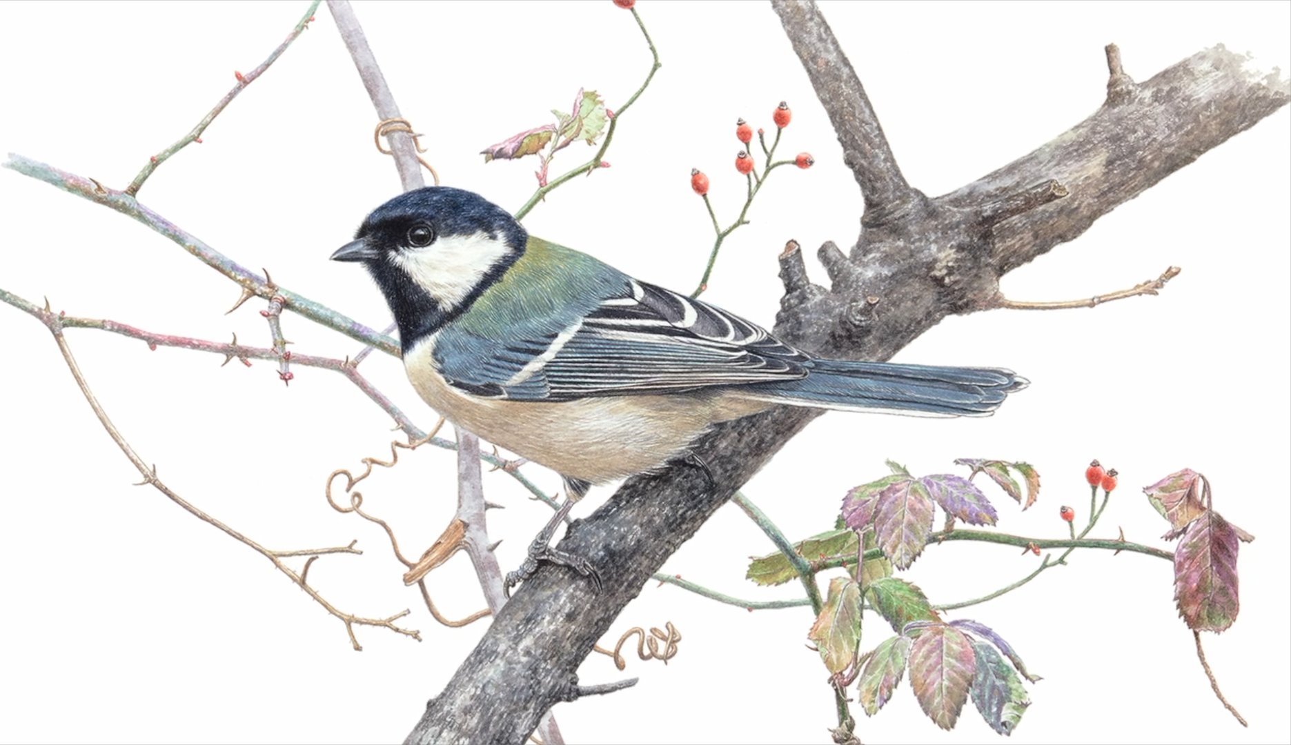 아파트 단지 주변엔 감나무가 많다. 사람들이 많이 사는 곳에 심다 보니, 새들은 그 열매를 먹기 위해 도심으로 찾아온다. 그때부터 감나무는 이우만 씨에게 단순한 감나무가 아닌 새를 만나게 해주는 고마운 존재가 된다. 그것이 그가 강조하는 ‘관계 맺기’ 관찰이다. 대상에 대한 이해를 바탕으로 그리게 되는 그림은 살아있다. 사진만 보고 형태만 아름답게 묘사하는 것이 아니라 직접 보고 경험하여 그림에 생생하게 담아낼 때, 진짜 생명력이 고스란히 전달된다고 그는 믿는다.