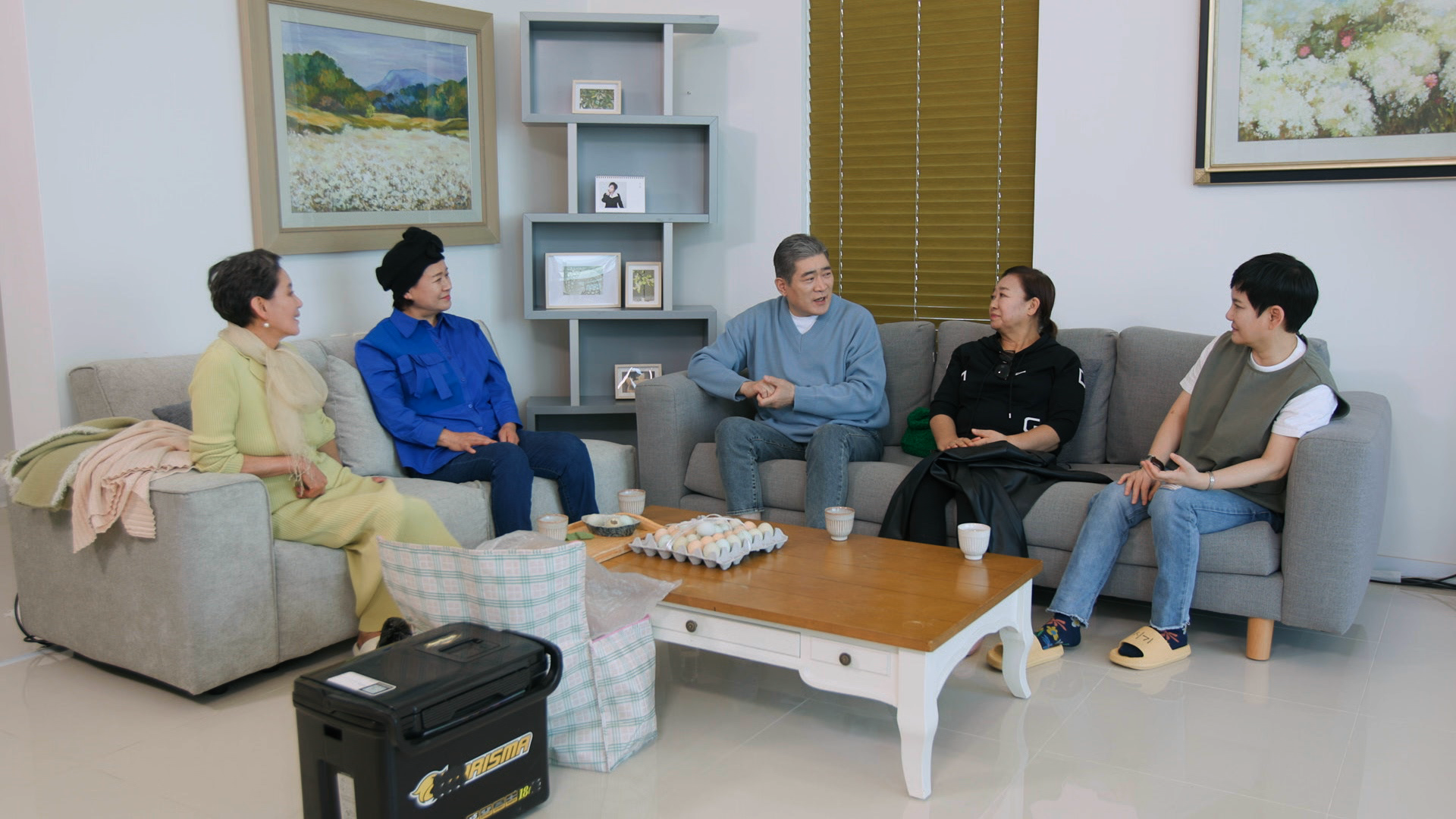 편승엽이 자매들을 위해 아주 특별한 선물을 준비했다. 먼저 공개한 선물은 ‘달걀 좋아하는 선배’ 혜은이를 위해 준비한 형형색색의 청계란. 넓은 텃밭을 가꾸고, 수십 마리의 닭을 키우는 프로 농부의 삶을 사는 편승엽답게 손수 담아온 싱싱한 청계란 한 판으로 ‘닭버지’의 면모를 보였다. 청계란에 감탄하고 있던 자매들의 시선을 끈 선물은 바로 다음 선물. 편승엽이 차에서 상자째 내려놓으며 공개한 선물에 자매들은 모두 “정말 살아있는 거냐”며 믿지 못하는 반응을 보였는데... 포항집의 앞마당을 접수한 편승엽의 깜짝 선물은 과연 무엇이었을지?