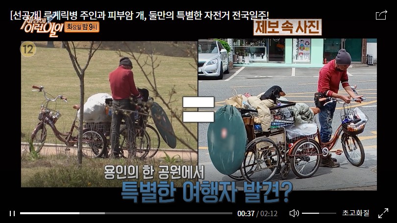 대략적인 경로만 전해 듣고 곧장 달려간 제작진. 다행히 공원에서 잠시 쉬고 있는 남자를 만날 수 있었다. 직접 개조한 자전거로 강아지와 전국 일주를 하고 있다는 오늘의 주인공 홍정석(57세) 씨와 그의 반려견 쿠키(11살). 그들에게는 어떤 사연이 있는 걸까...