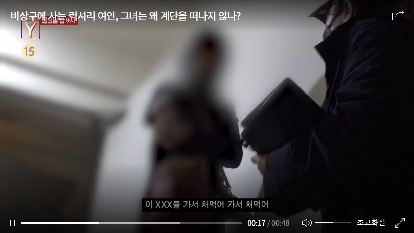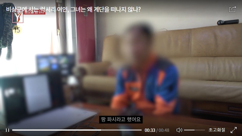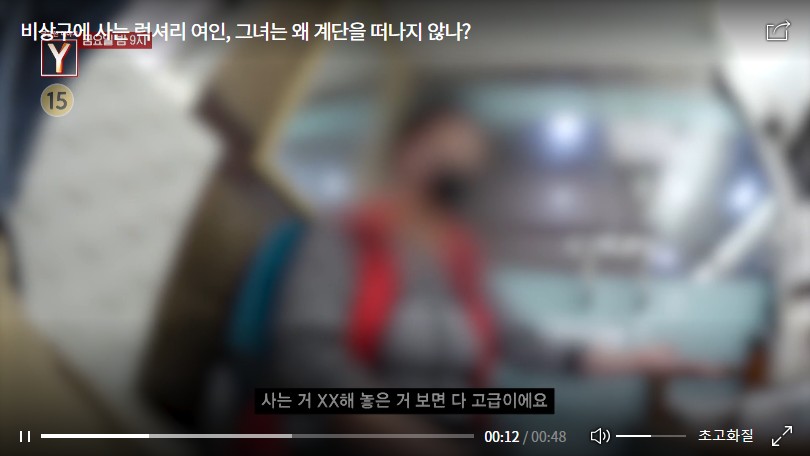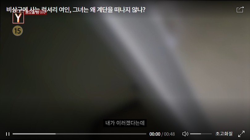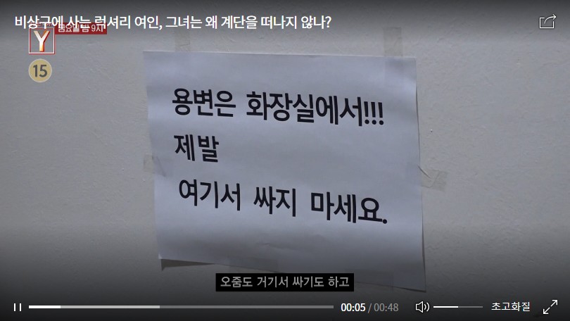 부족함 하나 없는 그녀는 왜 멀쩡한 집을 놔두고 기이한 계단 생활을 고집하고 있는 걸까? 주변 이웃들의 말에 의하면 과거엔 똑똑하고 말도 잘했다는 한 씨. 먹을거리를 사서 주변에 나누는 인심도 후한 사람이었다고. 그녀의 갑작스러운 변화에는 말 못 할 기구한 사연이 있다는데…. 이번 주 <궁금한 이야기 Y>에서는 비상구에 사는 럭셔리 여인의 숨겨진 사연에 대해 취재했다.